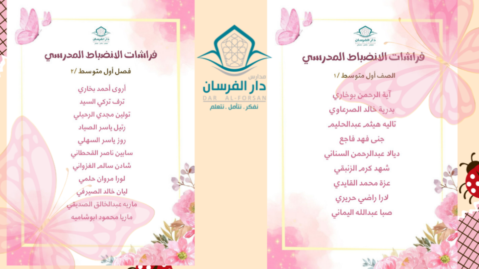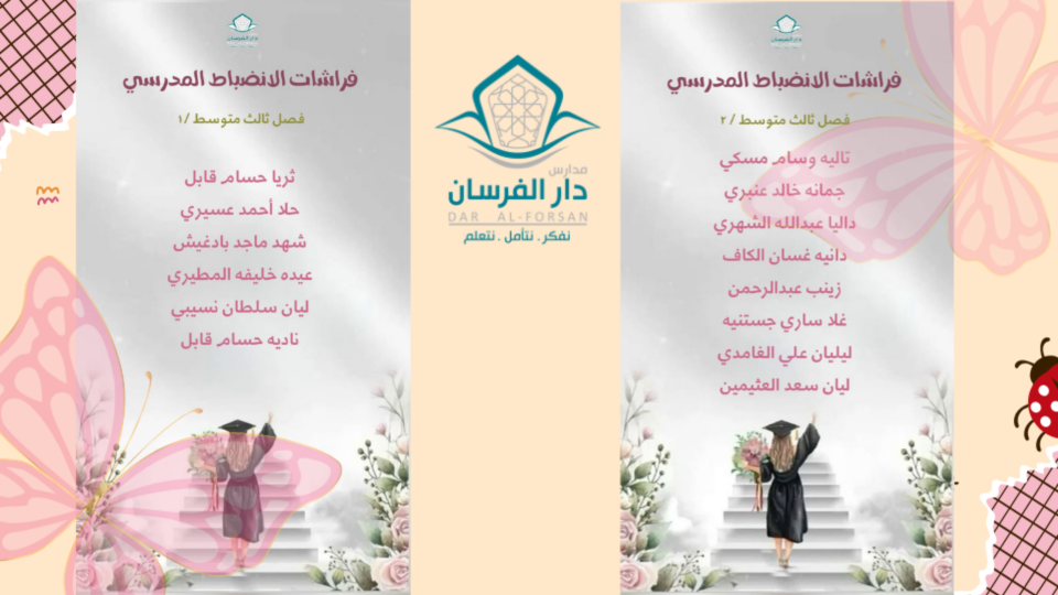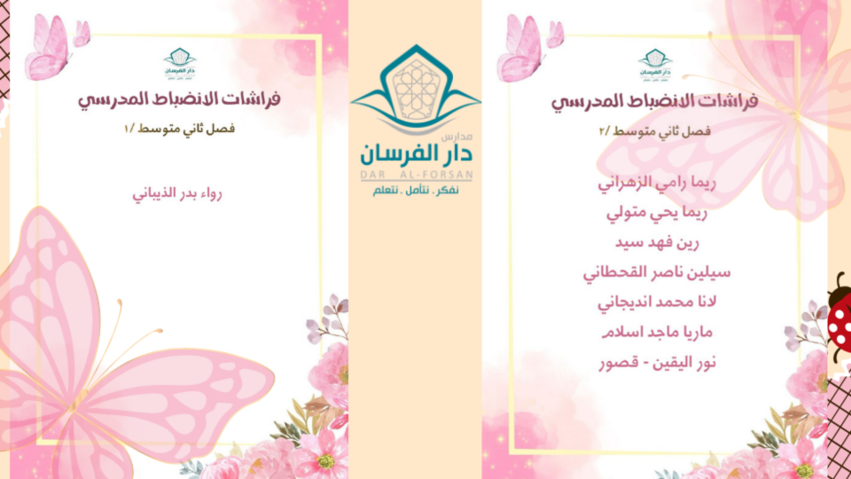 فراشات الانضباط المدرسي للمرحلة المتوسطة